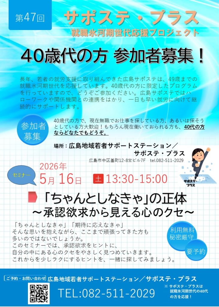 4月18日(土)第46回目となるサポステ・プラス就職氷河期世代向けセミナーがあります。現在働いていても、求職中でも、...